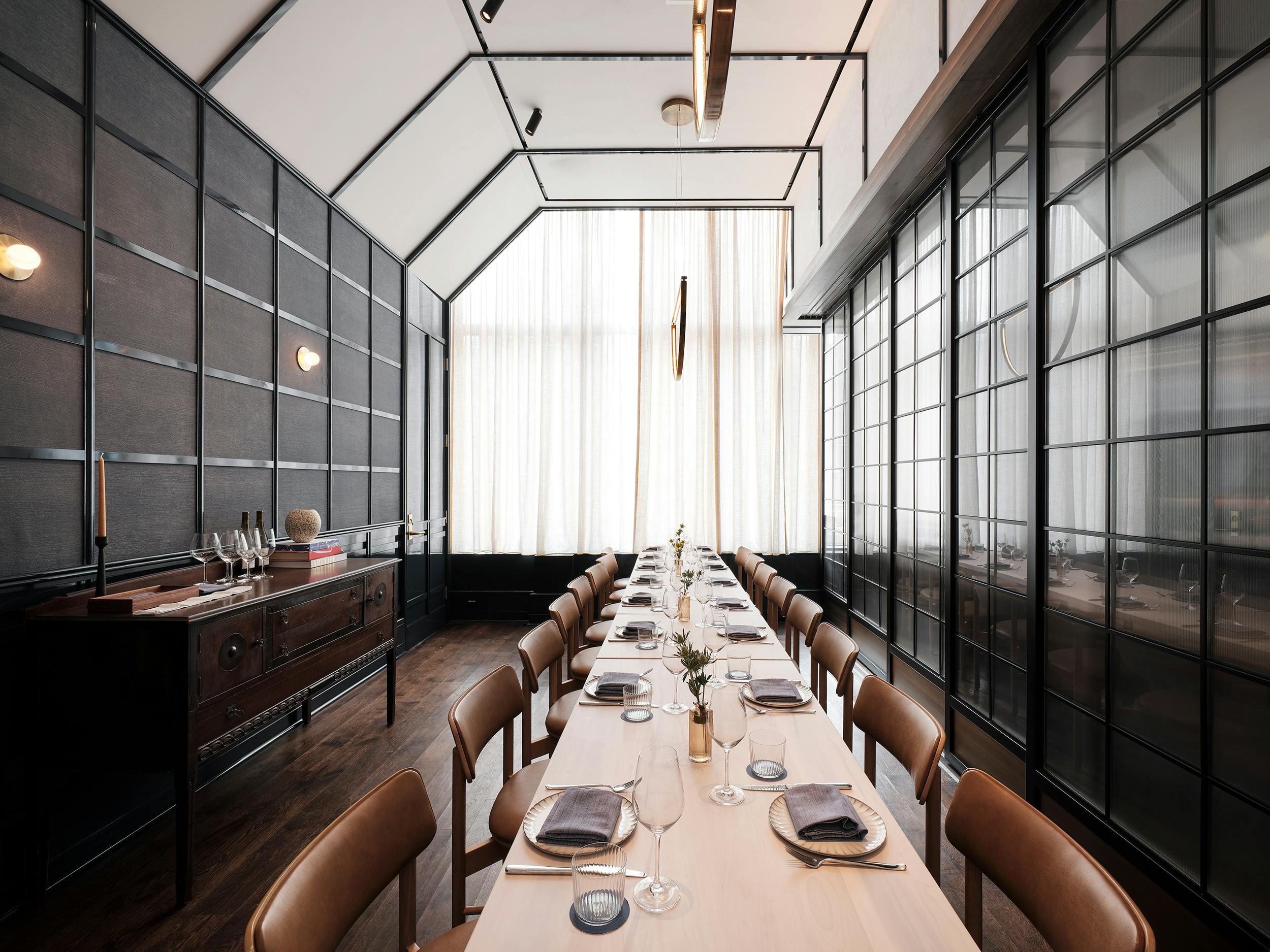 "Designed by Parts & Labor, Greywind’s interiors draw on the rich natural landscape of the majestic Hudson Valley set against the raw grit of the Manhattan skyline."