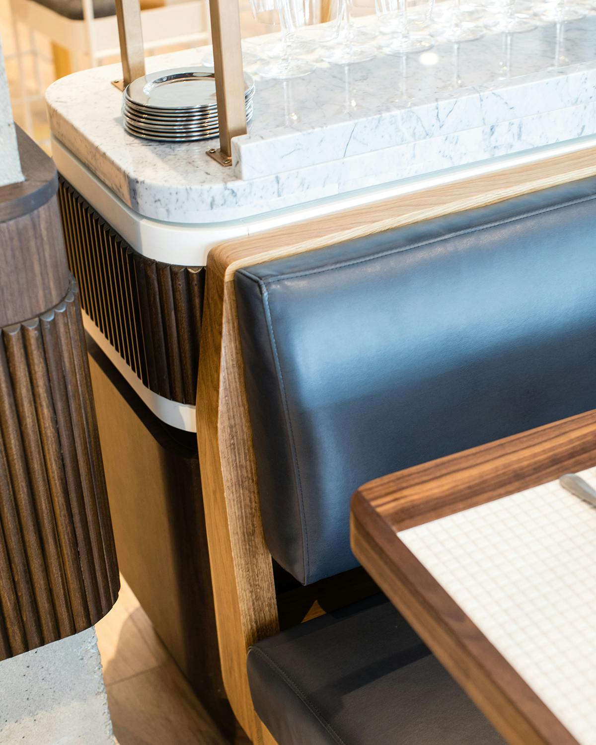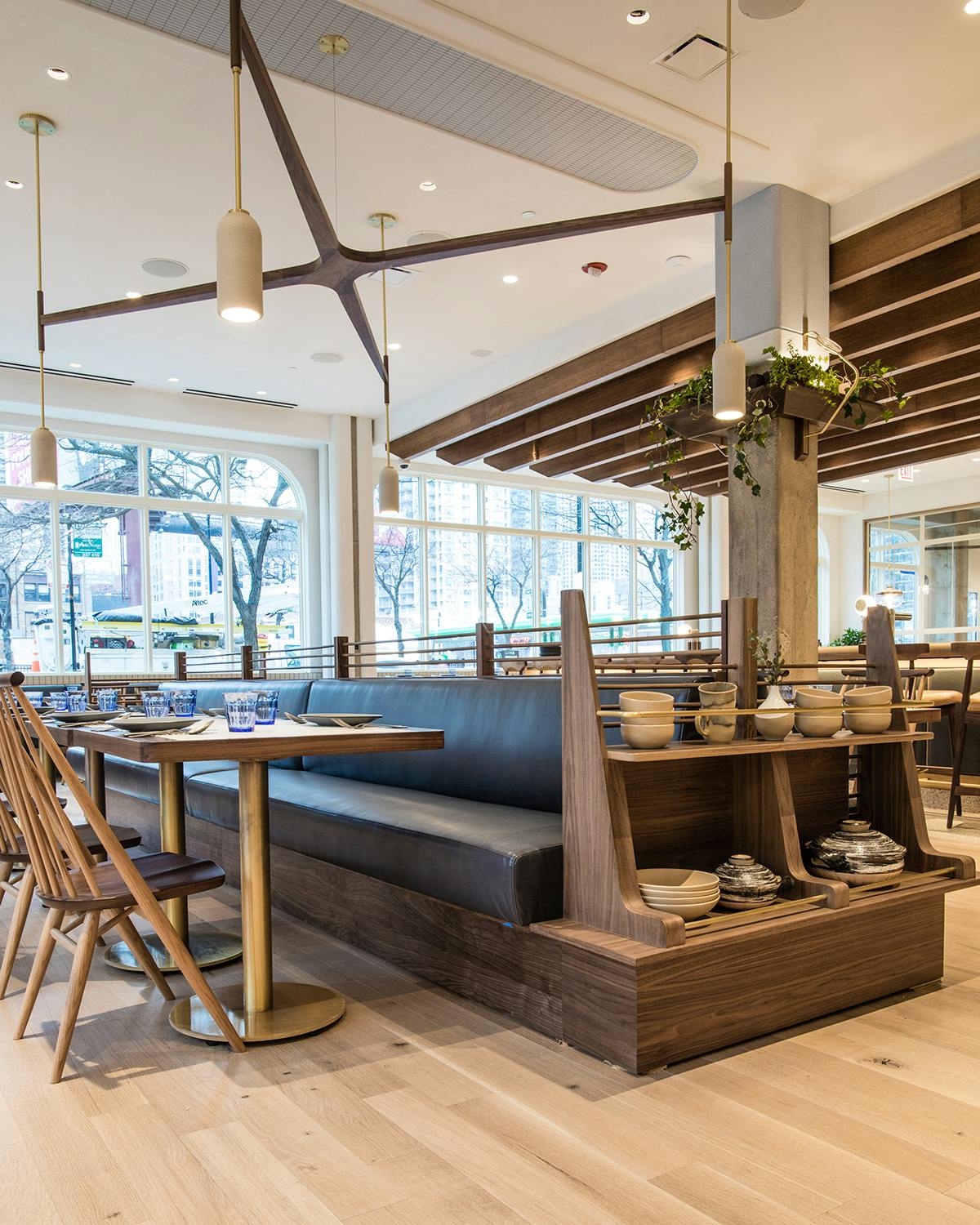 "Pacific Standard Time, a new restaurant in Chicago by Parts and Labor Design, uses California as a point of inspiration, arriving at a complex, eclectic palette of tile, marble, terrazzo, leather, and an abundance (and diversity) of wood."
